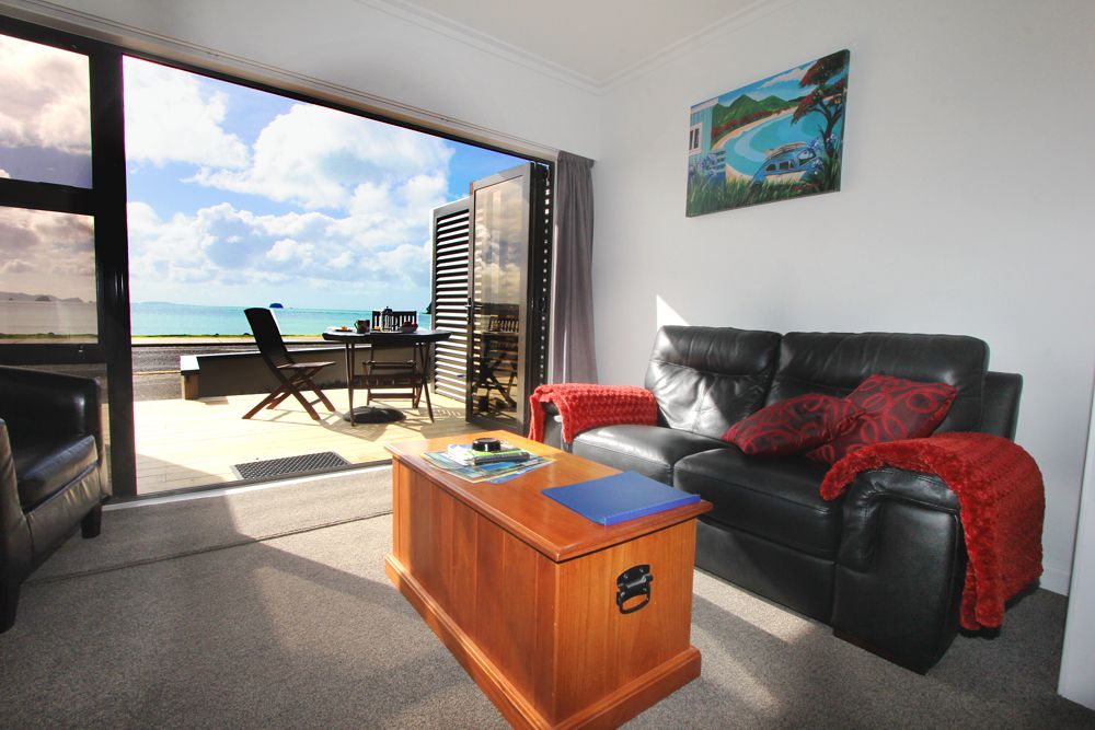 The recently refurbished Supreme Beachfront Studio Apartment has a private patio with bbq and beautiful sea views. It comes with air con, kitchen and an on-suite. The bedroom has a king size bed. The open plan living offers a dining area and large lounge with comfortable sofas.
